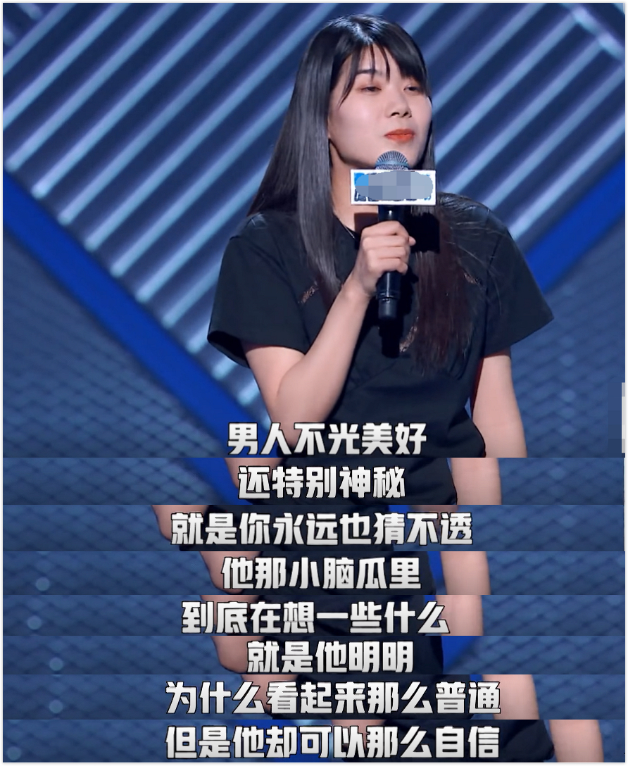 就算是在残酷赛制驱动下,没有脱口秀表演经验的她屡屡被男选手抢着挑选为PK对手,她也能自嘲“这辈子都没被这么多男的竞争过”。