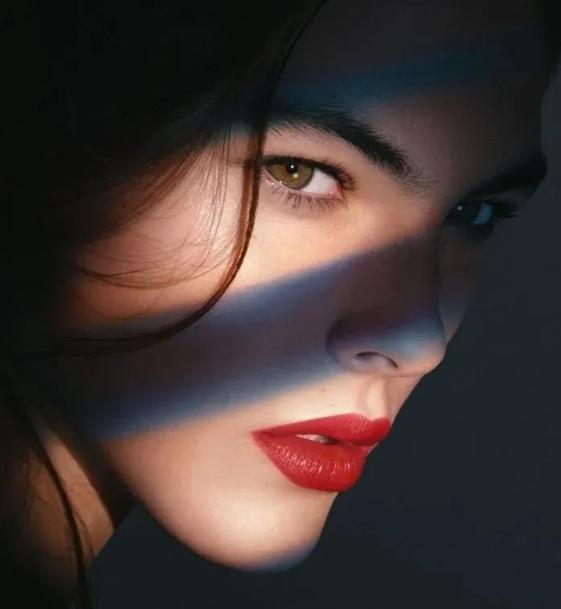 红唇碧眼,黑金诱惑啊!一如最完美的雕塑,古典与冷峻,柔美与英气并存,获得彩妆界的钟爱,一度拿下某品牌全年的美妆代言。